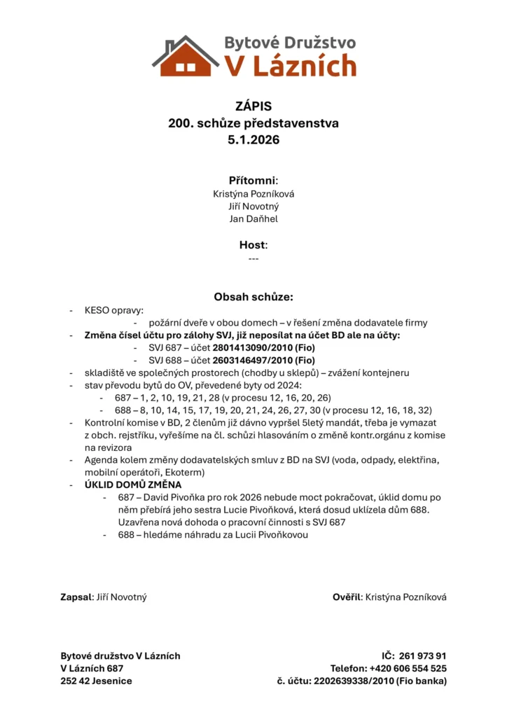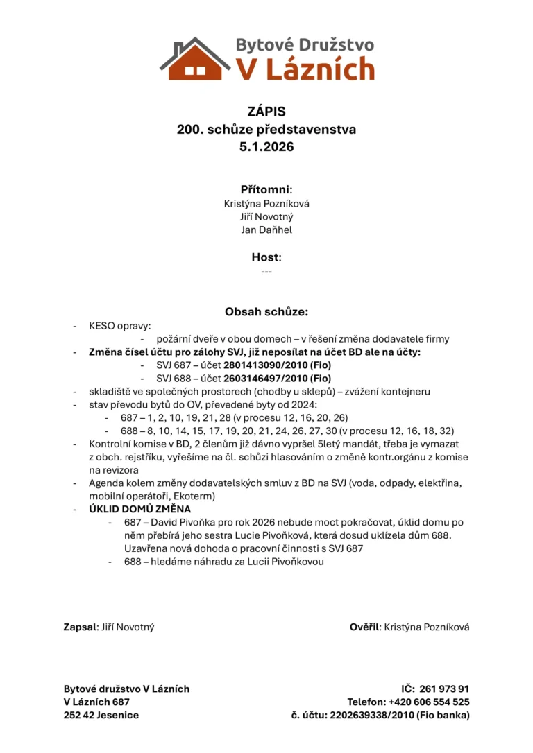 Zápis ze schůze BD – číslo 200